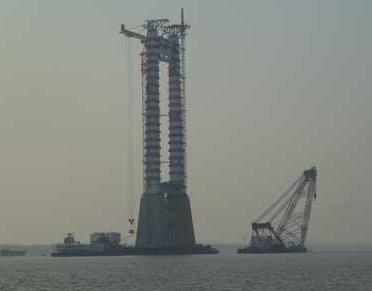 中塔施工现场远景图,南京志勇惠民医疗服务有限公司是国内第一家将复合润滑涂层用于桥梁润滑系统,国内第一家将鞍座之间摩擦系数达到0.04,桥梁鞍座与座体之间润滑结构已获国家专利,已在国内多座大型跨江桥梁应用此润滑工程技术。